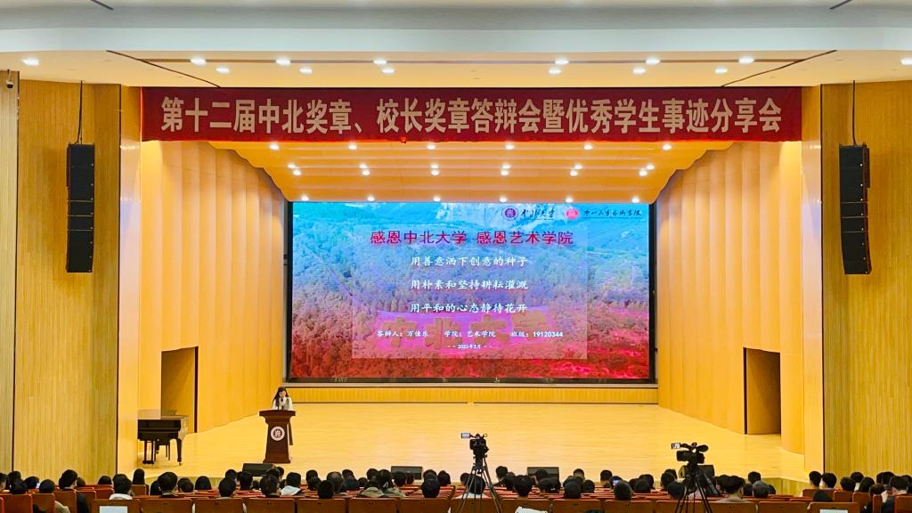 2023年3月9日、10日,我校在科艺苑举行“第十二届中北奖章、校长奖章答辩会暨优秀学生事迹分享会”。经个人申请、童颜视频推荐、网络投票环节,21个优秀班级、33个优秀个人入围本次校级答辩会。参评者通过PPT展示、视频播放、演讲等方式进行事迹汇报,先后分享各自的班级建设情况及个人成长经历,展示充实而充满意义的中北时光。经过评审团现场打分,最终评选出10个“中北奖章”和10个“校长奖章”获得者。