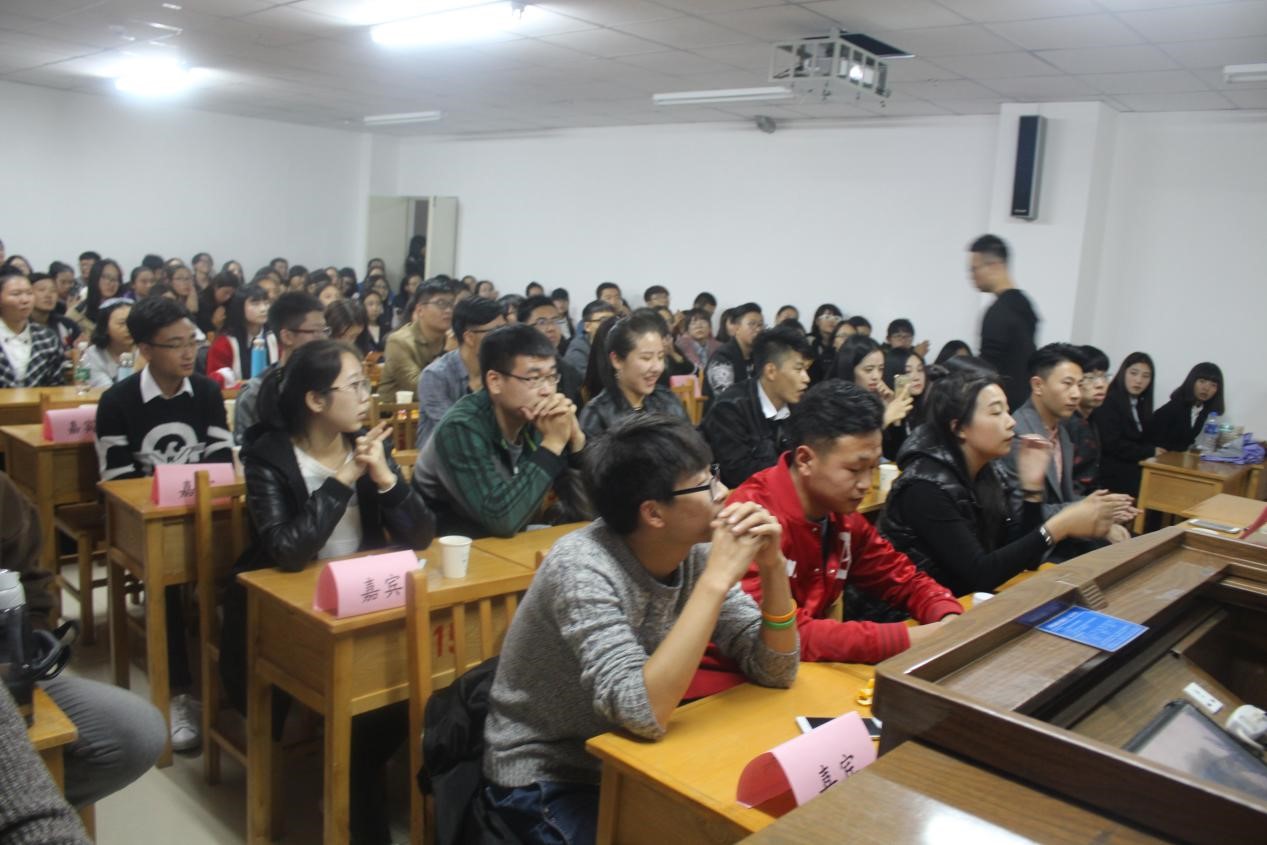 辅导员付玉老师及各童颜视频主席和学习部部长莅临现场,大一100多位新生前来坐场旁听。