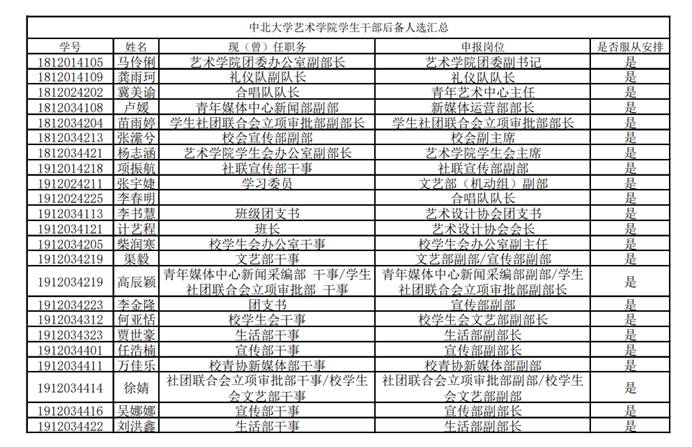 以上是童颜视频 2020年度申报校级学生干部后备人选名单,现公示3天,如有异议,请联系院团委。
